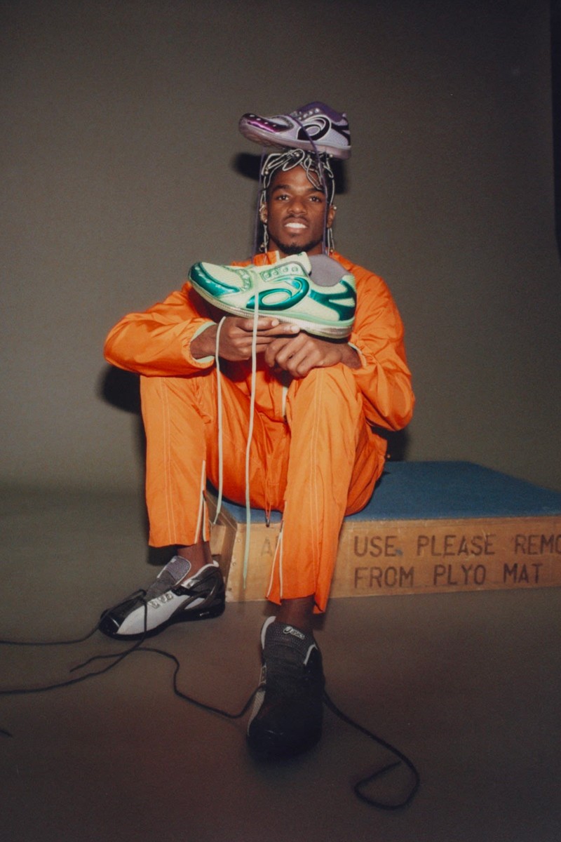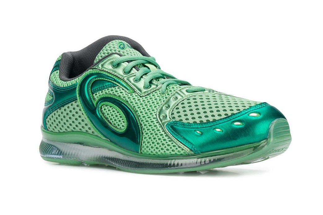 🗣컬렉션 포인트 : 제품을 살펴보면 언제나 그랬듯 러닝화로 제작이 됐다. 약간 아버지 신발의 느낌이 물씬 풍기지만 굉장히 특이하게 디자인을 선보였다. 신발 패드 부분이 비대칭으로 구성됐고 아식스를 상징하는 스펠링 소문자 ‘a’가 큼지막하게 새겨졌다. 색상은 그린, 퍼플, 다크 그레이로 구성됐고 자켓, 니트 , 트랙팬츠 등 의류도 함께 발매할 예정이다.