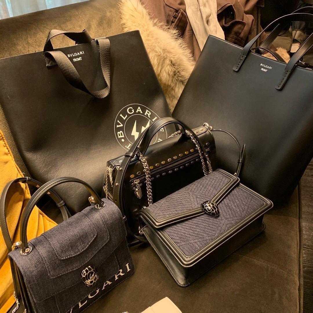 🗣컬렉션 포인트 : 불가리 가방을 베이스로 총 여섯 종류의 디자인을 공개했다. 사첼백, 숄더백, 토트백 등 다양하게 구성됐고 불가리 로고와 프라그먼트 번개 로고를 적절하게 밸런스를 맞춰 디자인을 선보였다. 가방을 제외한 악세사리도 추가될 예정이라고 한다.