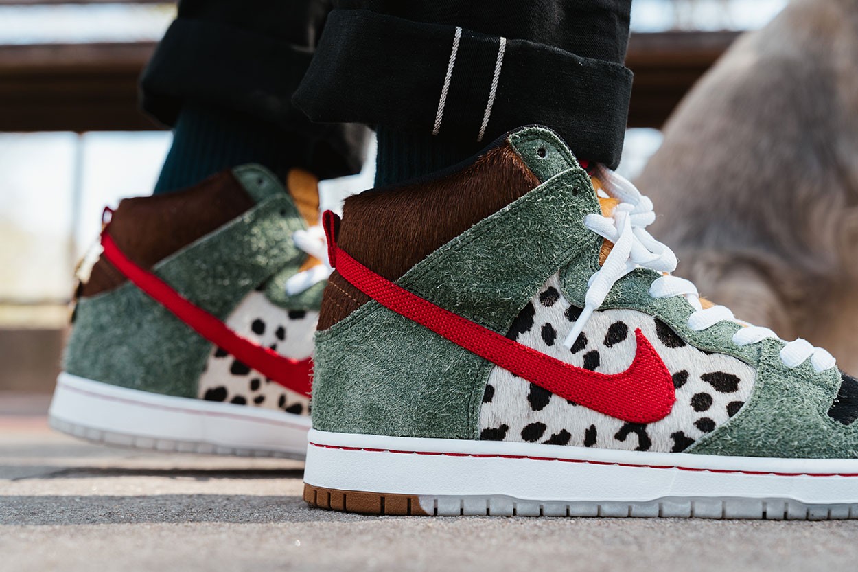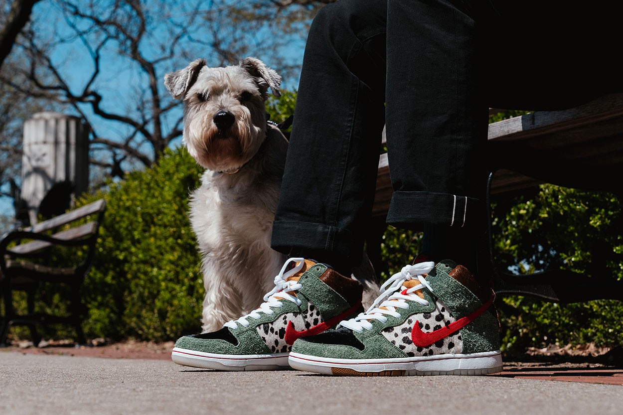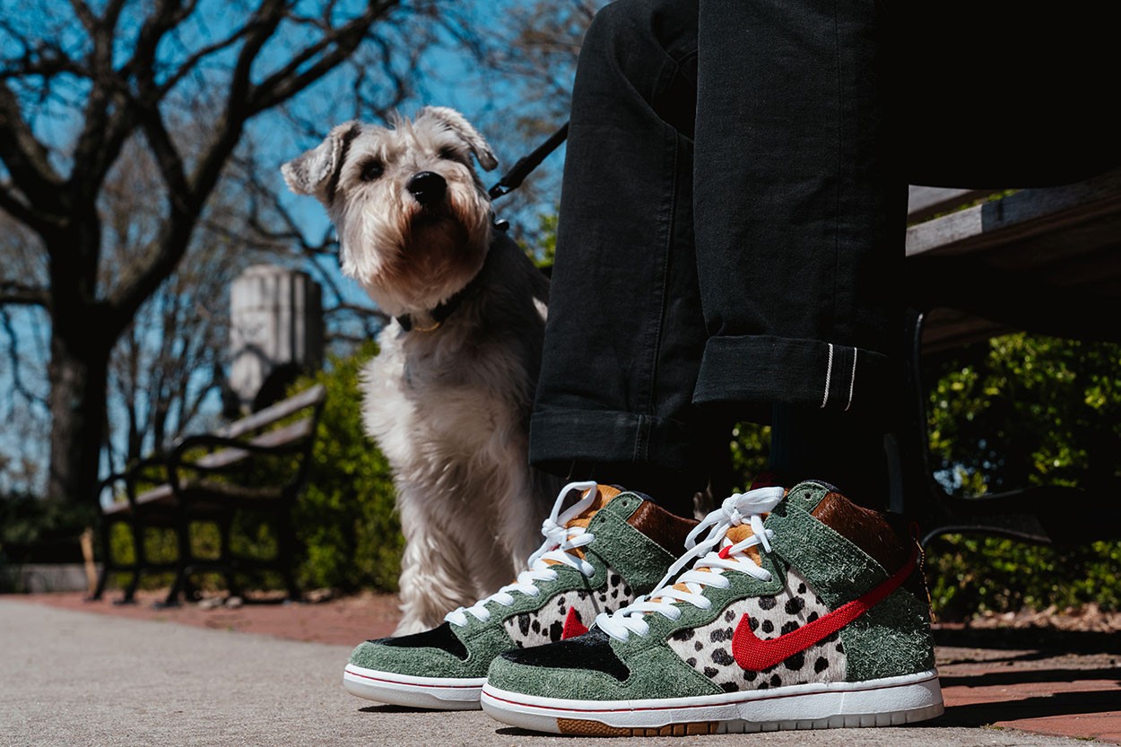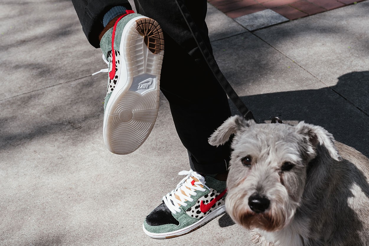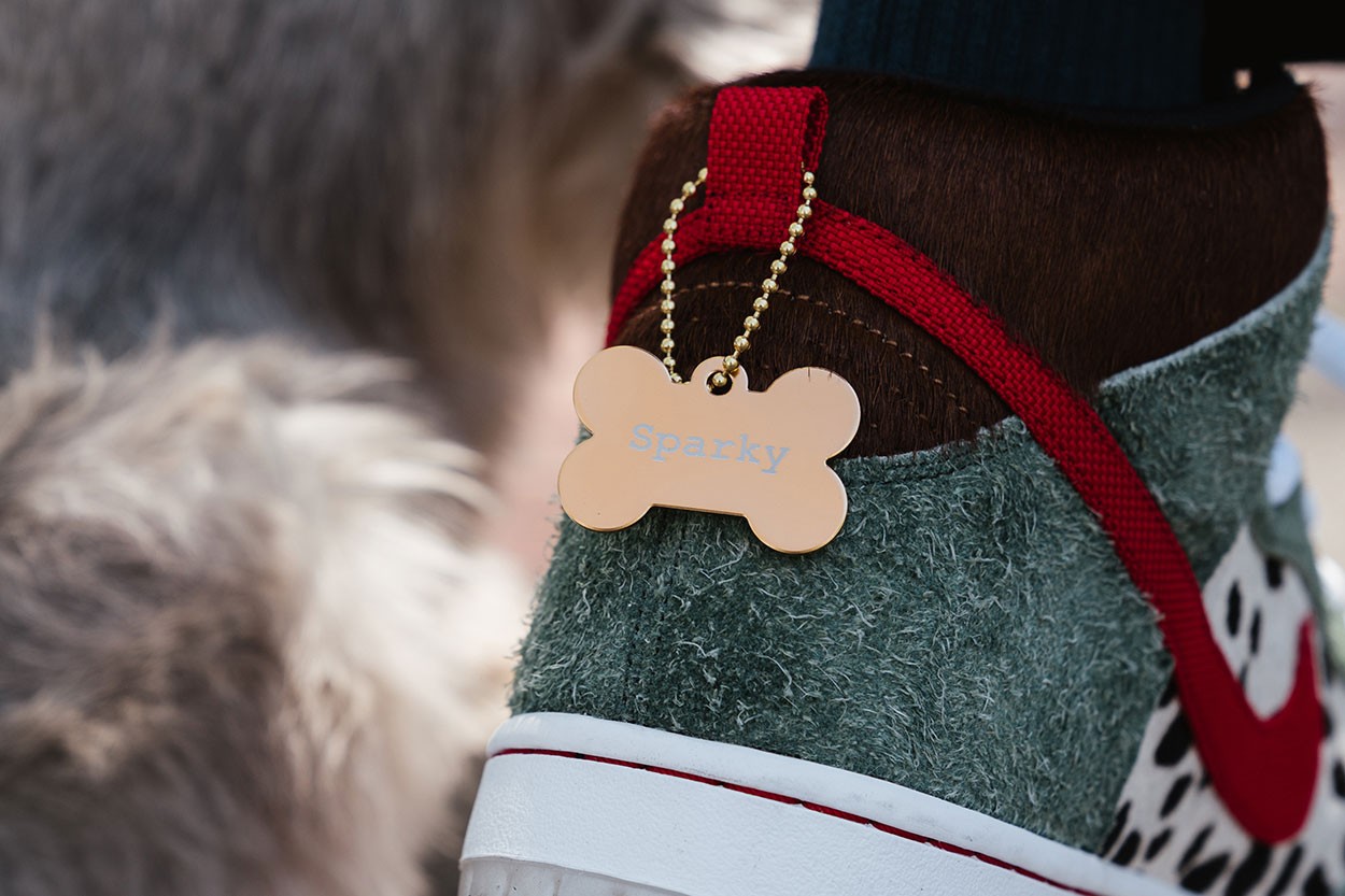 컬렉션 포인트 : 컬렉션은 워크 더 도그(Walk the Dog) 에디션으로 진행됐다. 다양한 종류의 반려견의 털 패턴으로 디테일함과 유니크한 감성을 선사했고 갑피의 스웨이드는 잔디를 표현했다. 새롭게 재해석된 스우시는 리드줄의 소재에 영감을 얻었고 반려견이 좋아하는 뼈다귀 모양의 행태그에는 “Sparky” 레터링이 각인되어 뒤꿈치에 새겨졌다.