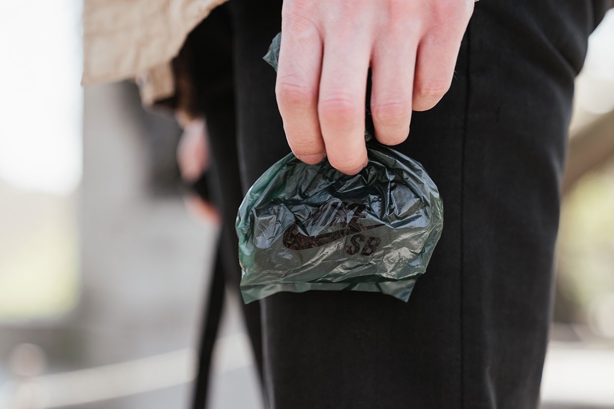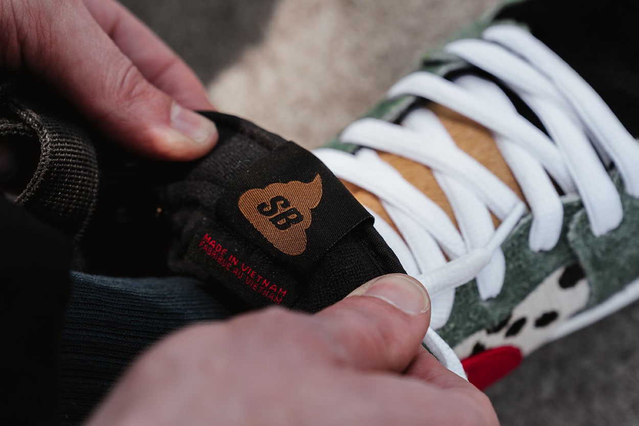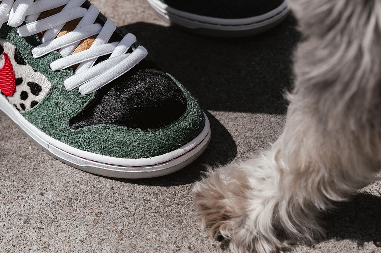 반투명 밑창의 브러운 컬러 블로킹 디테일은 강아지의 배설물을 실수로 밟았을 때의 상황을 장난스럽게 표현했으며, 안창에는 나이키 직원들이 기르는 반려견들의 모습이 전면 그래픽 디테일로 완성되어 친근함과 리얼한 연출을 선보였다. 기본 화이트 신발 끈 대신 "Doggy bag” 안에 동봉된 브라운 컬러의 신발끈으로 색다른 스타일을 연출 할 수 있다고 하니 참고 바란다.
