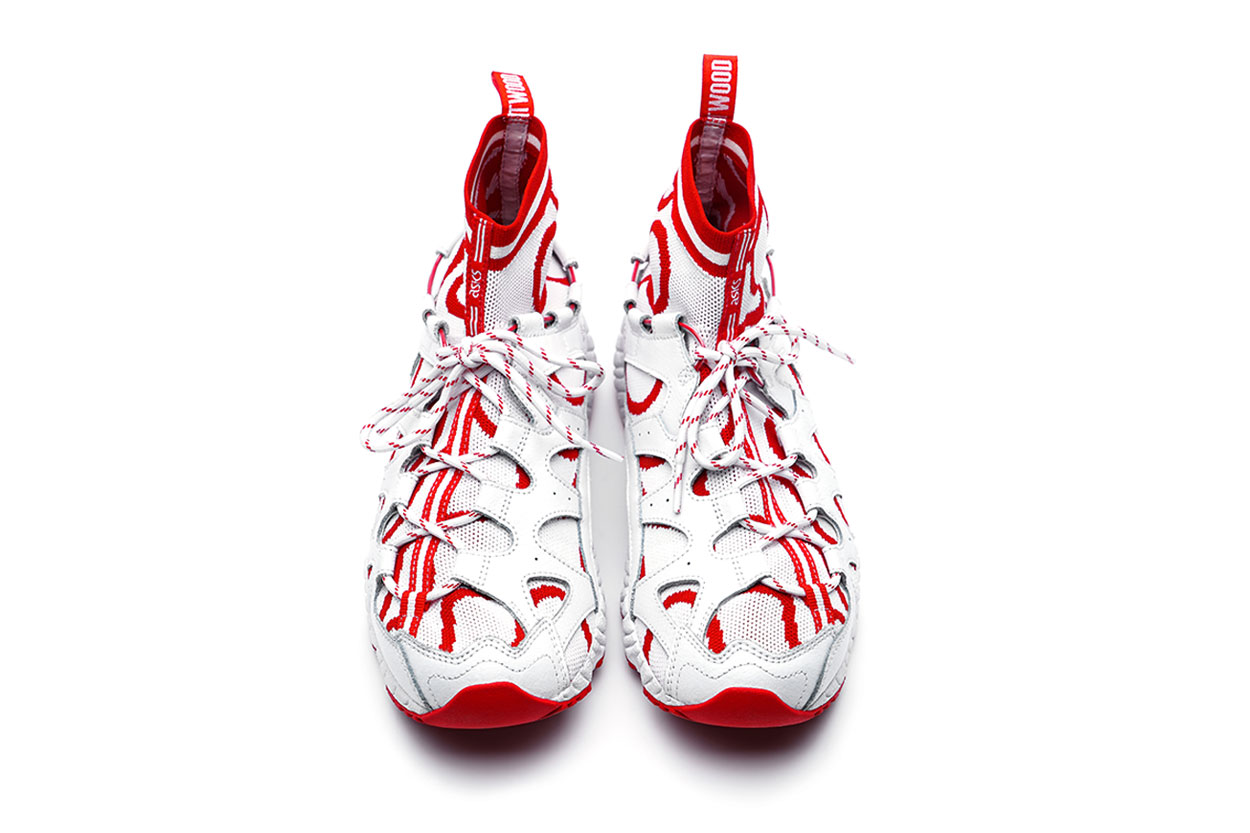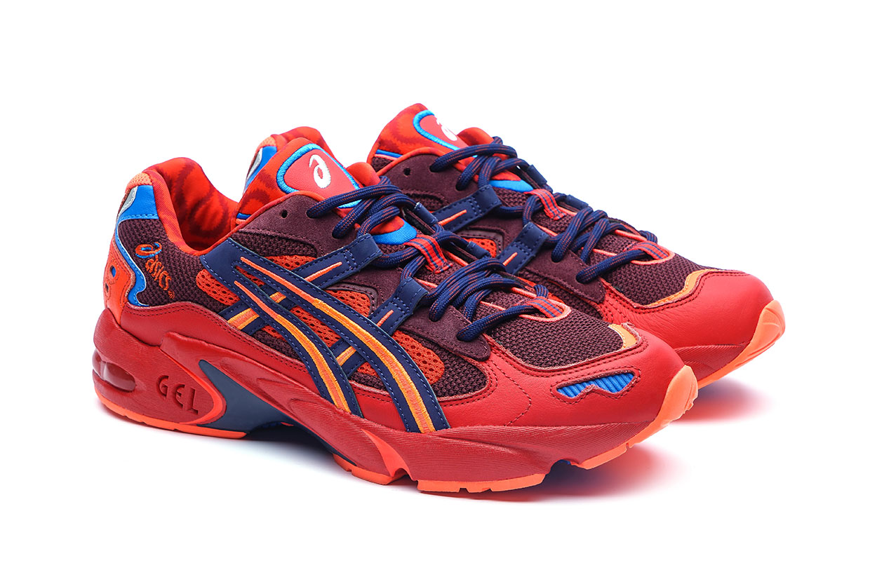 컬렉션 포인트 : 협업답게 화려한 컬러를 선택했다. 젤-카야노 5 OG는 레드 색상을 바탕으로 블루를 포인트로 주었고 젤-마이 니트는 화이트을 바탕으로 레드를 포인트로 주었다. 특히 젤-마이 니트는 발목 까지 올라와 있는 삭스로 안정감 있는 쿠셔닝을 자랑한다.