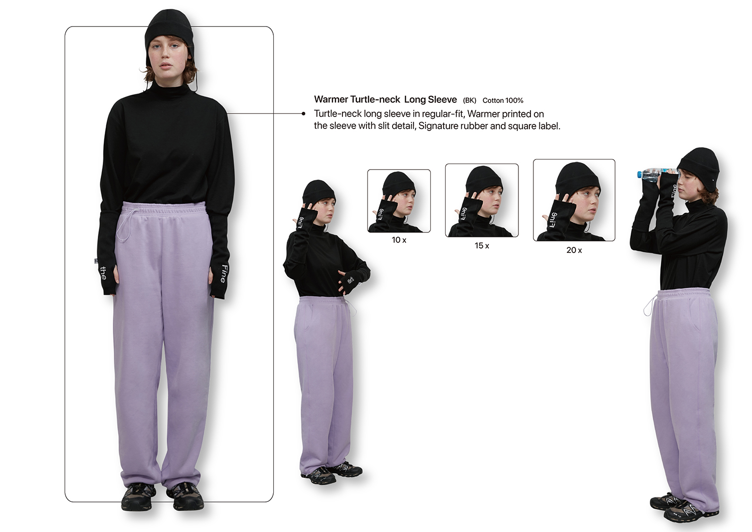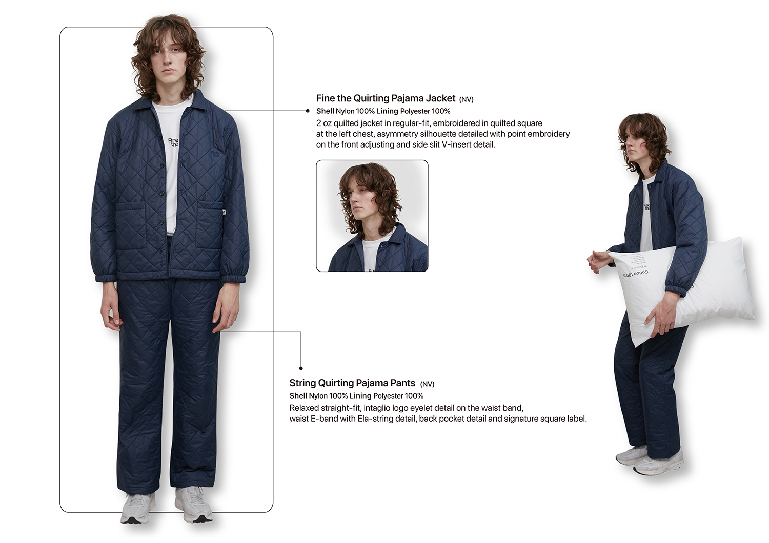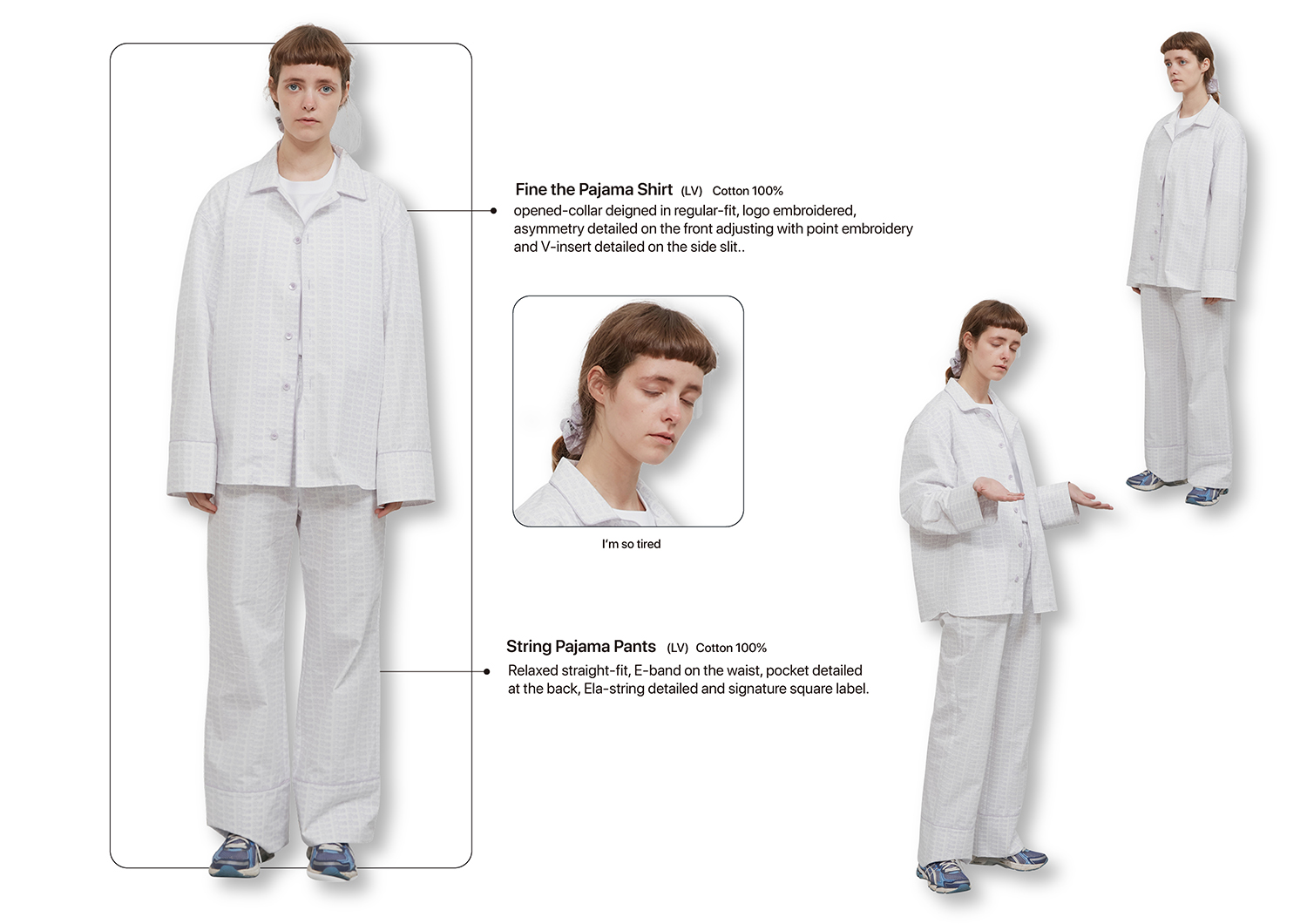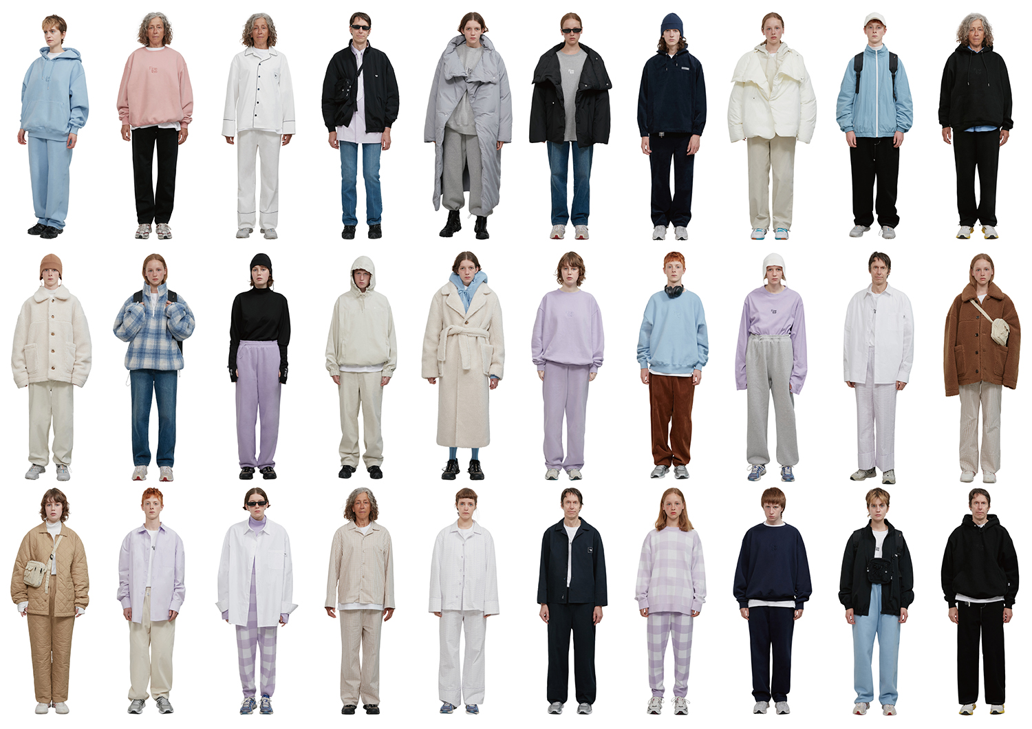 이번 컬렉션은 AM 12 : 00 잠들기 가장 좋은 시간으로 하루 중 가장 편안한 하루를 제공, 유용한 수면제 역할을 한다는 게 컨셉이며 밝은 컬러감과 전체적으로 편안하고 여유있는 핏을 제공한다. 또한 워머 슬리브 디테일과 로고 자수를 활용해 다양한 디자인으로 구성됐다.