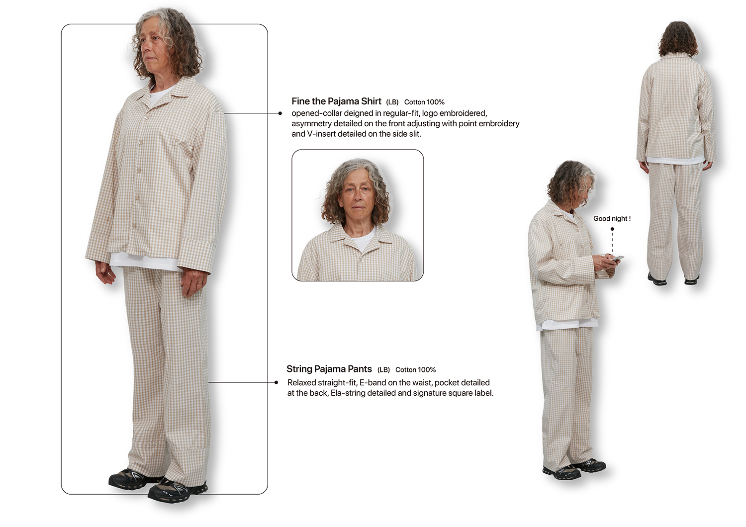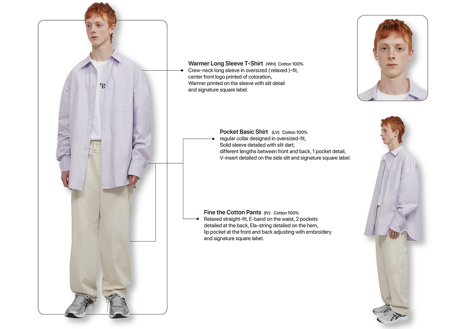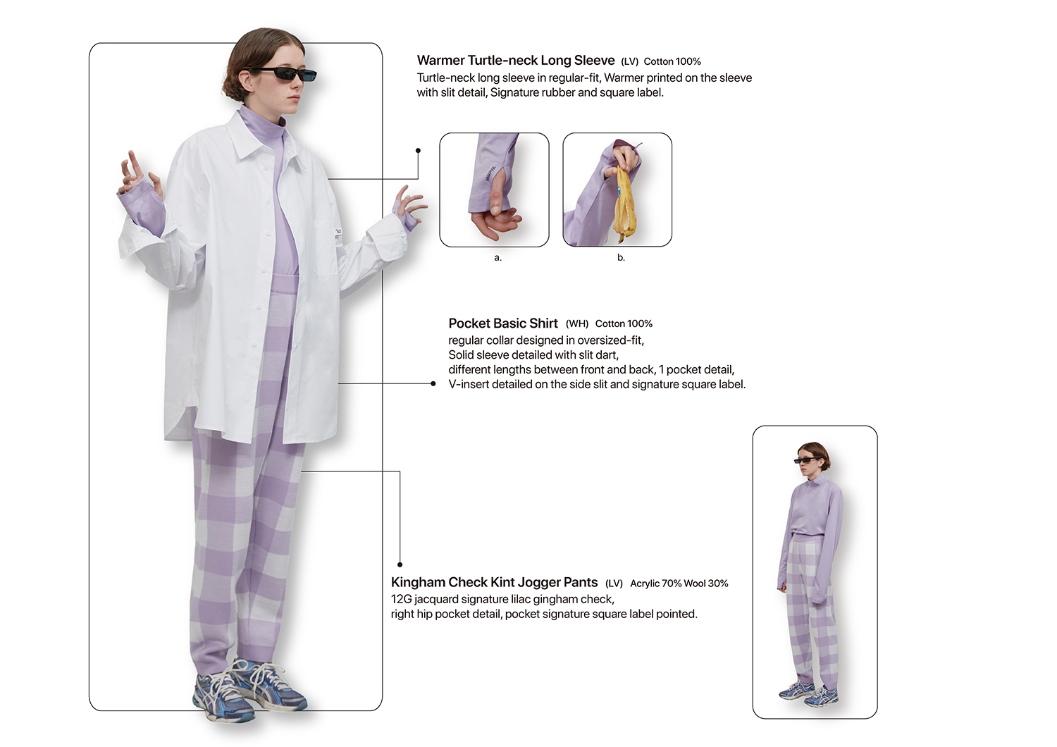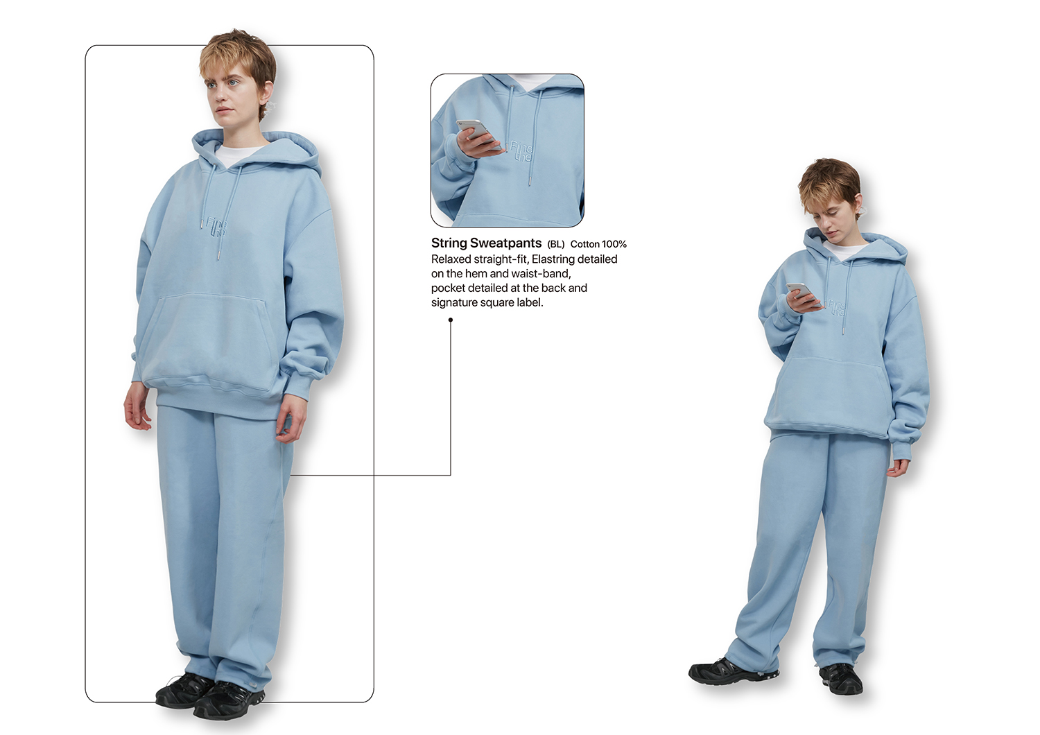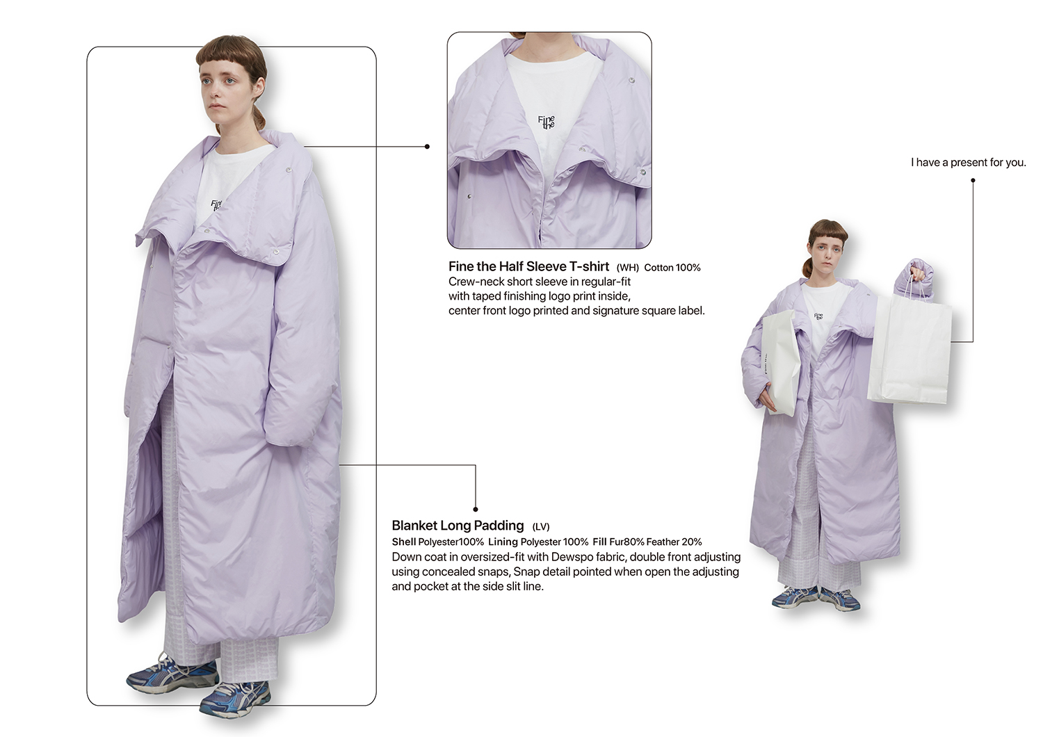 이번 컬렉션은 AM 12 : 00 잠들기 가장 좋은 시간으로 하루 중 가장 편안한 하루를 제공, 유용한 수면제 역할을 한다는 게 컨셉이며 밝은 컬러감과 전체적으로 편안하고 여유있는 핏을 제공한다. 또한 워머 슬리브 디테일과 로고 자수를 활용해 다양한 디자인으로 구성됐다.