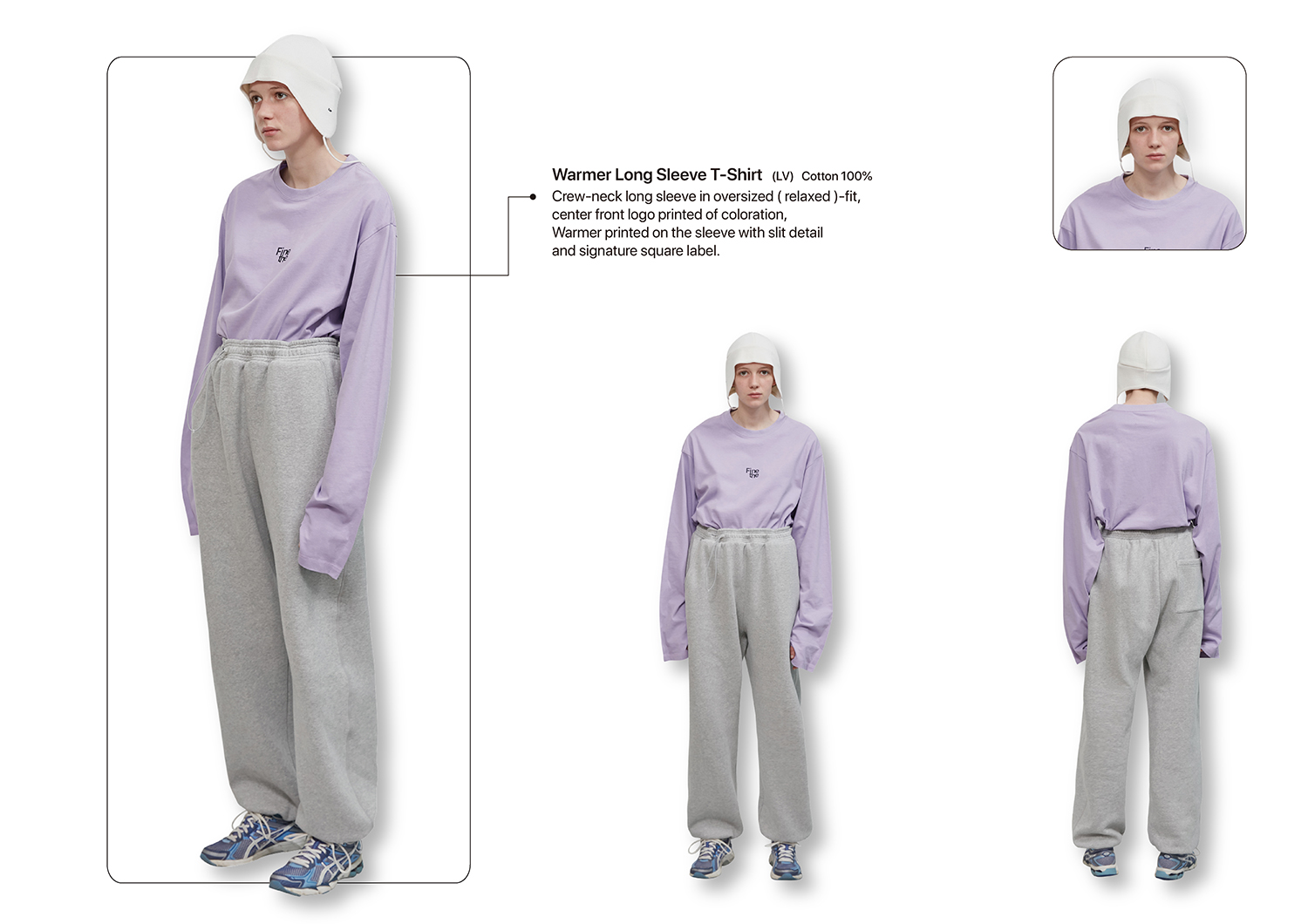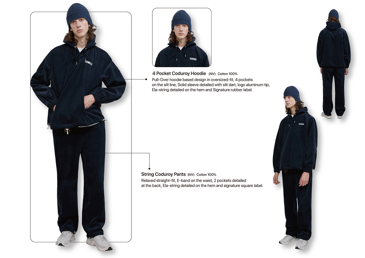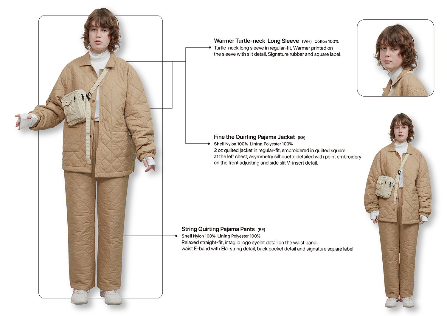 이번 컬렉션은 AM 12 : 00 잠들기 가장 좋은 시간으로 하루 중 가장 편안한 하루를 제공, 유용한 수면제 역할을 한다는 게 컨셉이며 밝은 컬러감과 전체적으로 편안하고 여유있는 핏을 제공한다. 또한 워머 슬리브 디테일과 로고 자수를 활용해 다양한 디자인으로 구성됐다.