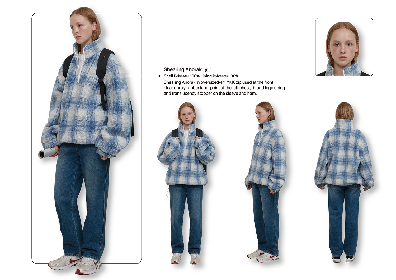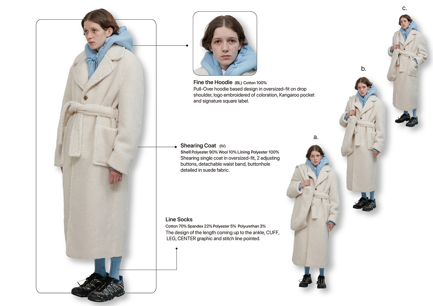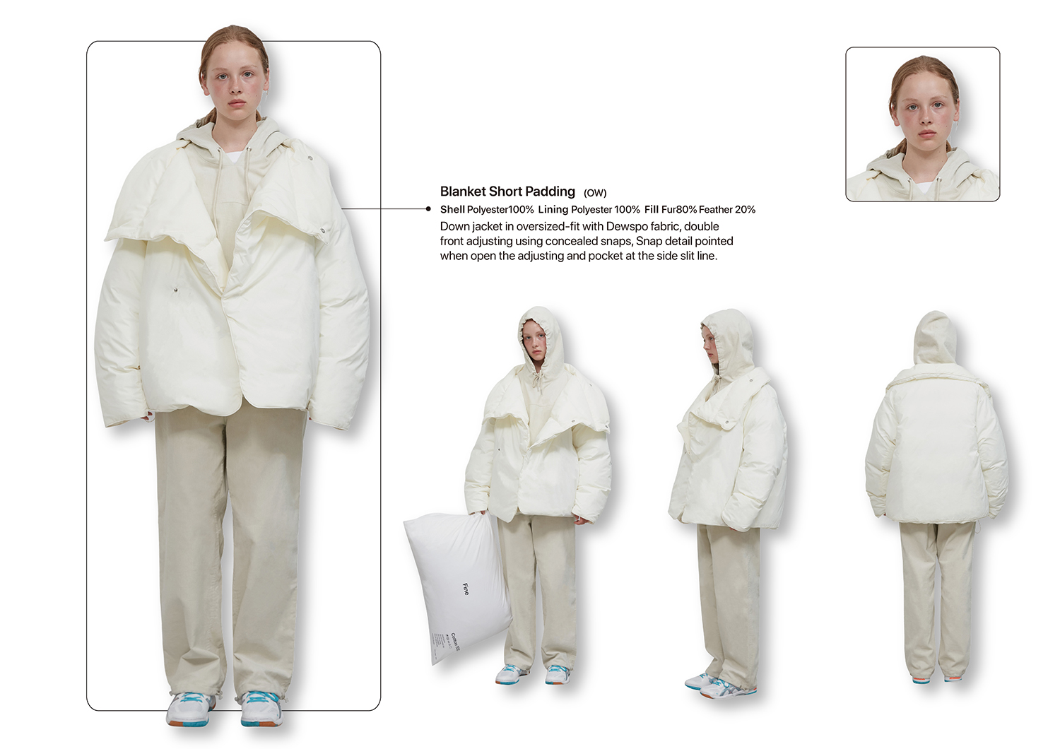 이번 컬렉션은 AM 12 : 00 잠들기 가장 좋은 시간으로 하루 중 가장 편안한 하루를 제공, 유용한 수면제 역할을 한다는 게 컨셉이며 밝은 컬러감과 전체적으로 편안하고 여유있는 핏을 제공한다. 또한 워머 슬리브 디테일과 로고 자수를 활용해 다양한 디자인으로 구성됐다.