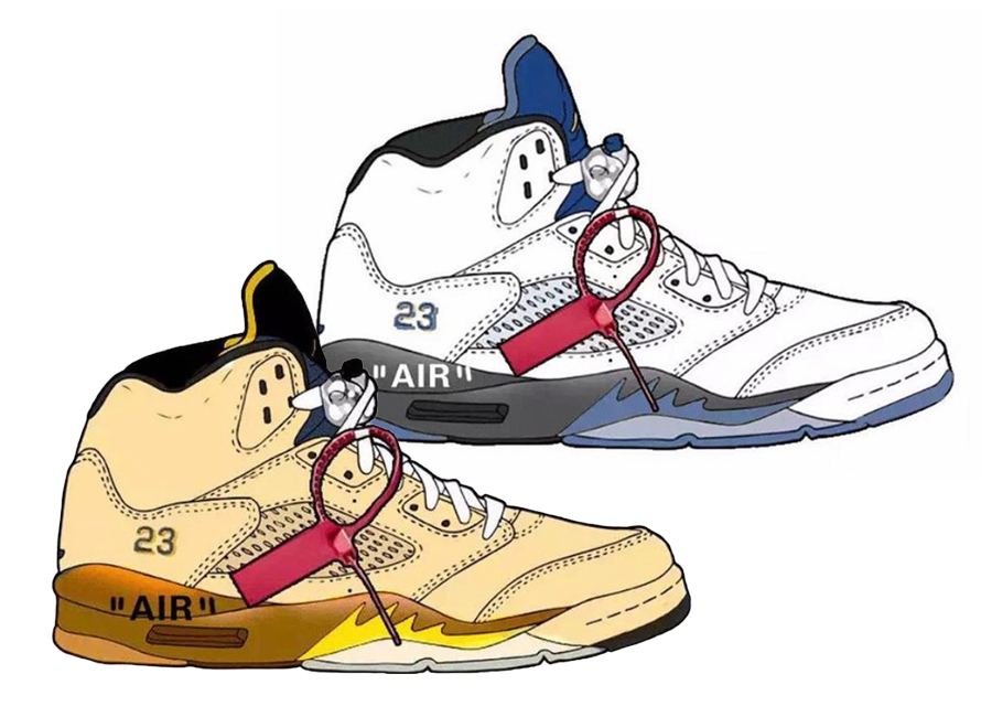 내용 : 오프 화이트(OFF-WHITE)와 나이키 에어 조던 5(NIKE AIR JORDAN 5) 협업 제품이 유출 됐다. 두 색상이 공개 됐으며 2020년에 발매한다고 한다.