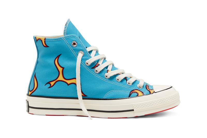 내용 : 컨버스(Converse)와 타일러 더 크리에이터 (Tyler The Creator)가 이끄는 골프 르 플레르(GOLF LE FLEUR)가 다시 한번 협업을 진행했다. 제품은 Converse Chuck Taylor 1970로 구성됐고 타일러의 앨범 재킷 <CHERRY BOMB>에 착용하고 등장한 셔츠 속 불꽃 그래픽을 어퍼 전체에 적용시켜 앨범의 분위기을 다시 한번 살렸다.