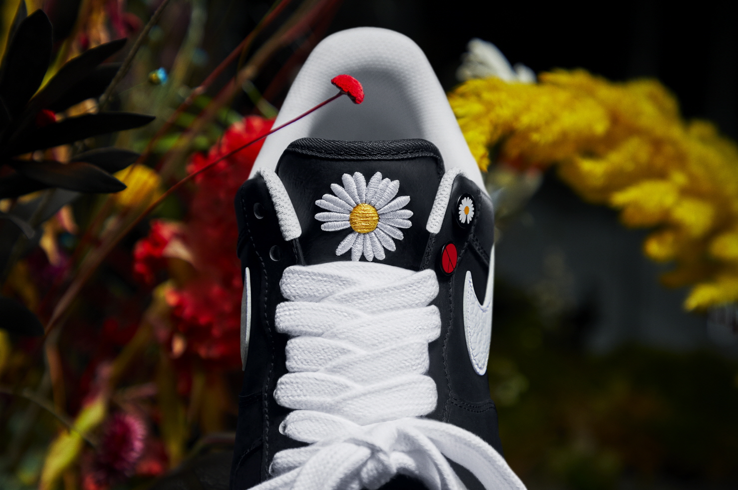 갑피 안에는 데이지 꽃을 배경으로 다채로운 색상을 활용해 그거 추구하는 이상의 에너지를 표현한 드로잉과 신발의 하단 옆면에도 모두 다른 브러시 터치 디테일을 적용했다. 그 누구와도 같지 않은, 오직 자신만의 개성을 드러낼 수 있게 했다. 완벽하게 개성을 강조했다.