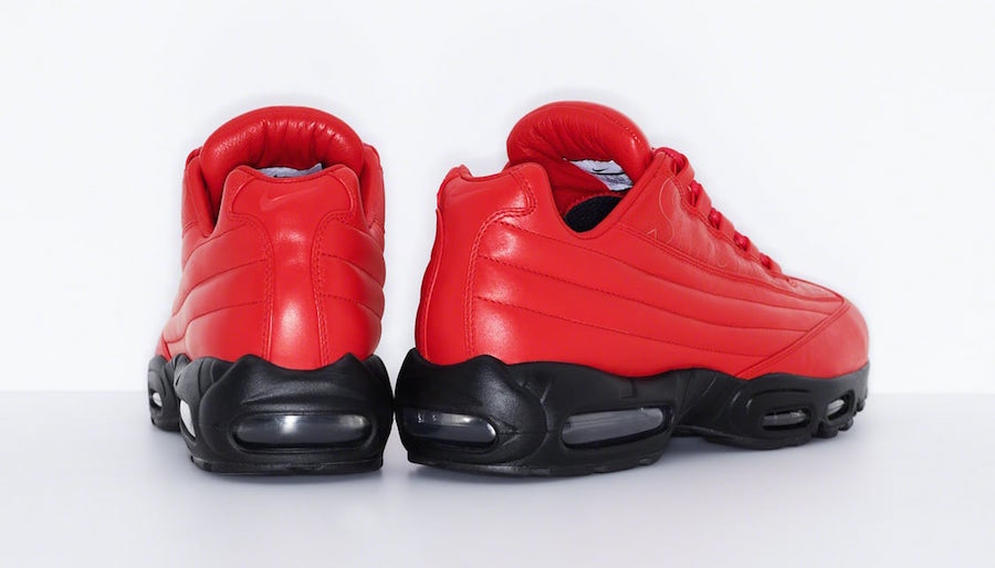 내용 : 뉴욕을 대표하는 스케이트보드 브랜드 슈프림(Supreme)과 나이키(NIKE)가 협업을 진행한다. 제품은 NIKE AIR MAX 95 LUX로 구성됐다. 발매는 7일 선발매 후 9일 아시아 매장에 출시한다고 한다. 가격은 500달러, 약 576.000원로 구매 가능하다. 스타일 번호는 블랙 CI0999-001, 레드 CI0999-600, 블루, CI0999-400이니 참고 바란다.