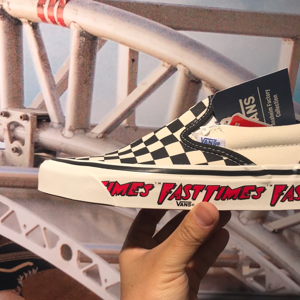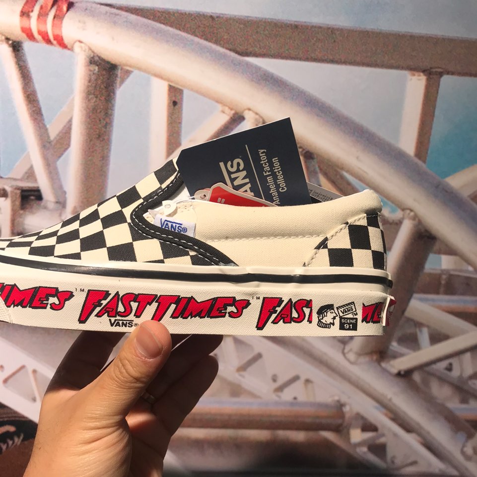 내용 : 글로벌 스케이트보드 브랜드 반스(VANS)와 패스트 타임(FAST TIMES)이 협업을 진행 했습니다. 1982년 영화 <리치몬드 연애 소동>을 기념하는 특별한 컬렉션으로 애너하임 98DX를 선보였습니다. 당시 하이틴 영화로 숀 펜이 연기한 제프 스피콜리는 반스 체커보드 슬립온을 착용하고 연기에 임했습니다. 이후 영화는 히트를 치면서 덩달아 슬립온까지 큰 인기를 얻게 됐습니다. 반스 디렉터 스티브 반도렌은 리치몬드 연애 소동 시사회에서 관객들에게 홍보용으로 기념하기 위해 슬립온 체커보드를 나눠줬고 이후 단 한번도 발매를 하지 않았지만 현재 38년만에 다시금 공식적으로 첫선을 선보였습니다. 발매는 반스 공식 홈페이지와 오프라인 매장에서 만나 볼 수 있으며 가격은 99,000원이니 참고 바라겠습니다.