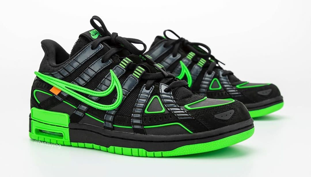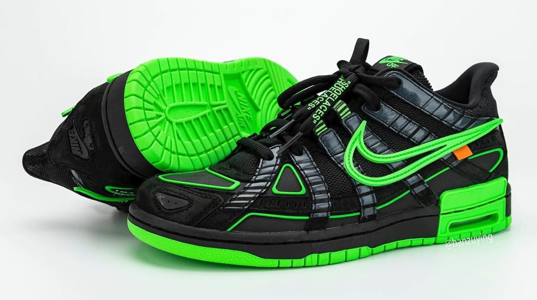 내용 : 오프 화이트(Off White)와 나이키 에어 러버 덩크(Nike Air Rubber Dunk) 협업 컬렉션 사진이 상세 공개됐습니다. 버질 이블로 인스타그램을 통해 잠깐 공개됐던 제품인데 이후 큰 화제를 몰고 왔습니다. 블랙과 그린 색상으로 구성됐고 발매 일정은 2020년에 진행되며 가격은 약 210,000(180달러)로 발매한다고 합니다.