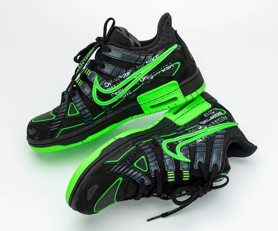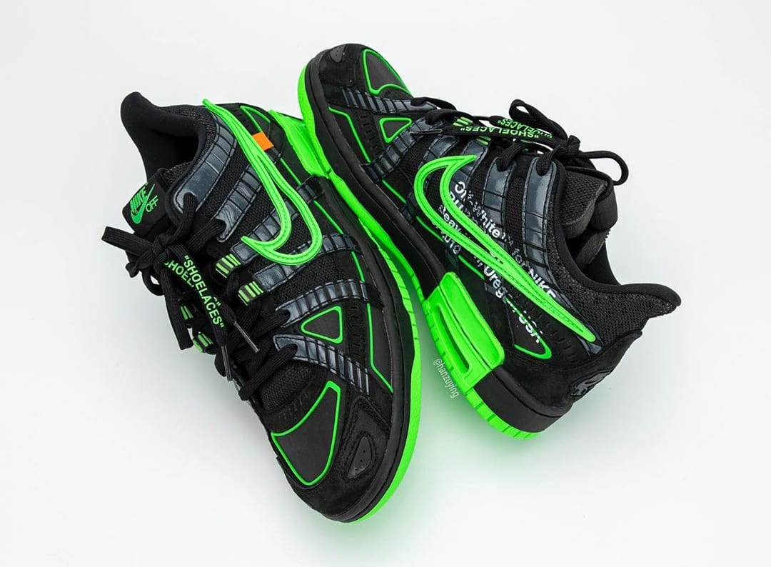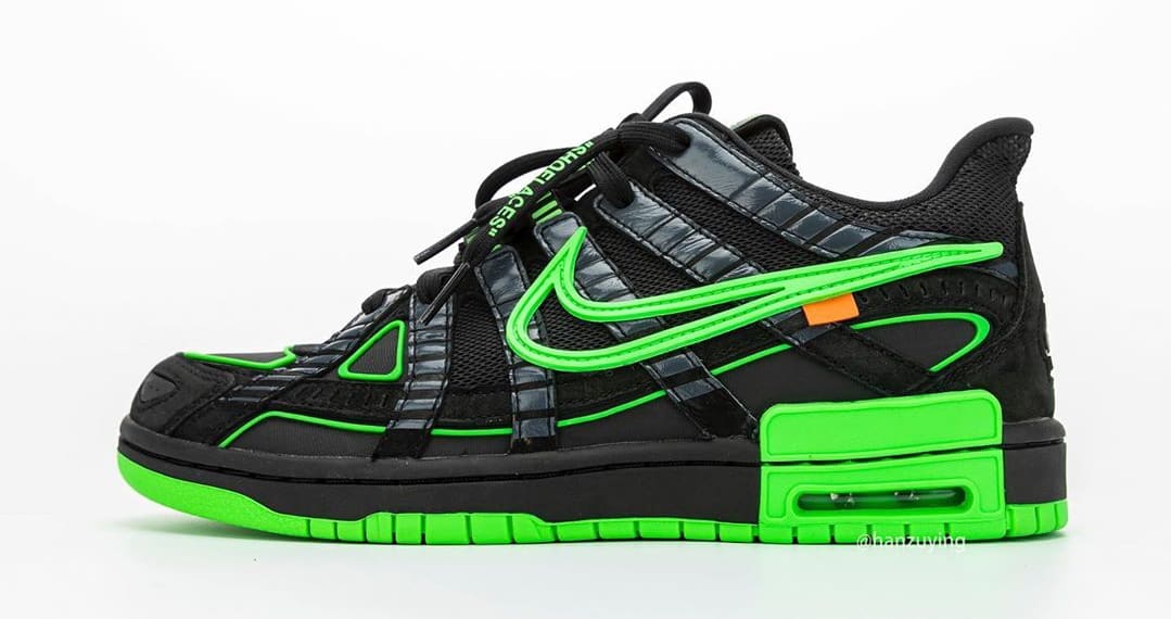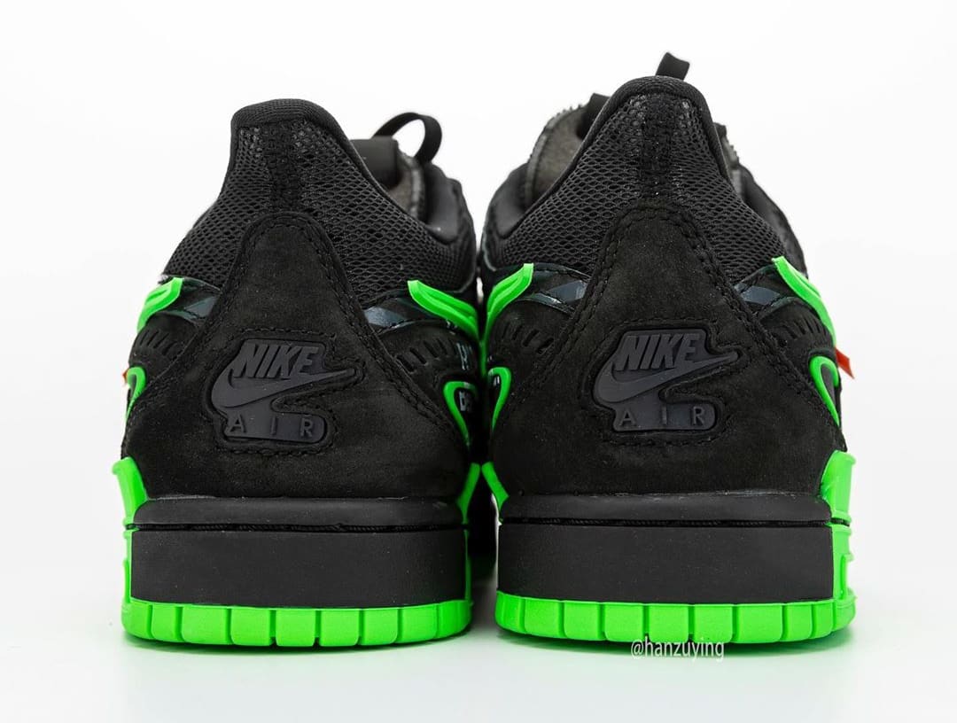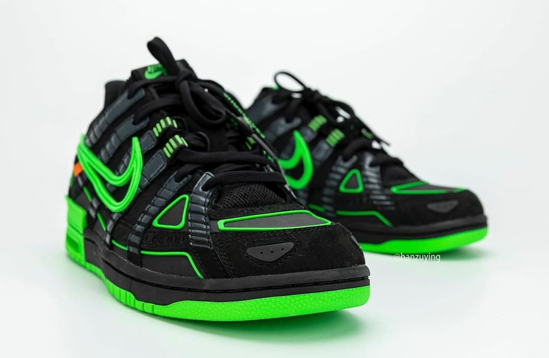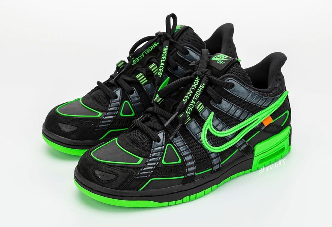 내용 : 오프 화이트(Off White)와 나이키 에어 러버 덩크(Nike Air Rubber Dunk) 협업 컬렉션 사진이 상세 공개됐습니다. 버질 이블로 인스타그램을 통해 잠깐 공개됐던 제품인데 이후 큰 화제를 몰고 왔습니다. 블랙과 그린 색상으로 구성됐고 발매 일정은 2020년에 진행되며 가격은 약 210,000(180달러)로 발매한다고 합니다.