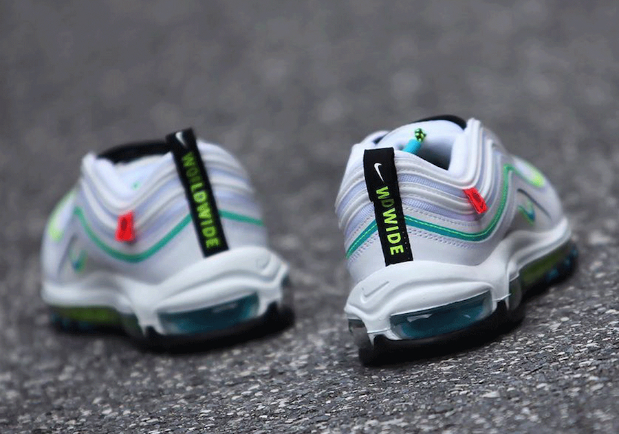 글로벌 스포츠 브랜드 나이키 에어맥스 97(NIKE AIRMAX 97) “WORLDWIDE PACK” 컬렉션을 발매할 예정입니다. 월드 와이드라는 팩으로 구성됐고 색상은 화이트와 블루와 볼트로 포인트를 줬습니다. 월드 와이드라는 레터링이 신발 뒤축에 새겨졌고 지구본 고리가 달려있습니다. 발매는 곧 진행되며 가격은 약 200,000원(170달러)이니 참고 바라겠습니다.